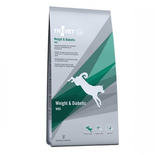 Trovet Weight & Diabetic WRD – sucha karma dla psa. Holenderska marka Trovet została wprowadzona na rynek pod koniec lat 80 – tych. Bez wątpienia tak ogromne doświadczenie w wytwarzaniu żywności dla zwierząt pozawala tworzyć produkty specjalistyczne i dostosowane do potrzeb organizmu na każdym etapie życia. Z pewnością, wieloletnia wiedza na temat żywienia, pozwala stale aktualizować produkty w oparciu o najnowsze badania w tej dziedzinie. Również każda nowa, wprowadzana przez markę karma, to produkt innowacyjny, spełniający standardy najnowszej dostępnej wiedzy z zakresu żywienia. Przede wszystkim, specjalizacją marki jest produkcja diet leczniczych, które wspomagają zwierzęta w walce z różnego typu schorzeniami. W związku z tym produkty spełniają wysokie standardy jakości, nie zawierają sztucznych barwników i konserwantów. Dlatego często stają się ważnym składnikiem skutecznej terapii.
