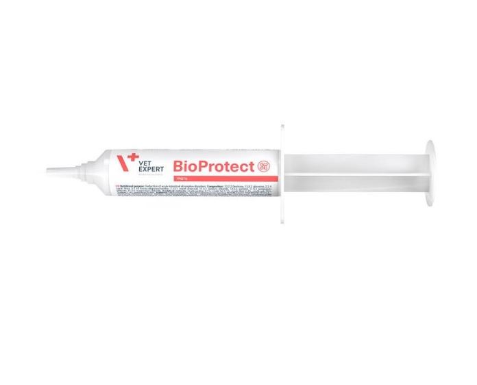VetExpert BioProtect Paste to preparat wspomagający dla psów i kotów z zaburzeniami mikroflory przewodu pokarmowego. Zalecany do podawania w czasie biegunki oraz po jej ustąpieniu.
