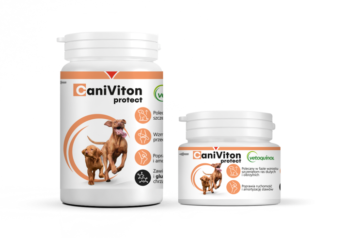 Vetoquinol Caniviton Protect jest przeznaczony dla psów każdej rasy i w każdym wieku. Preparat zawiera zawiera siarczan chondroityny i glukozaminę, których zadaniem jest usprawnienie metabolizmu tkanki chrzęstnej – hamują enzymy niszczące strukturę chrząstki oraz dostarczają komórkom tkanki chrzęstnej „budulca” do syntezy glikoaminoglikanów. Ich stosowanie poprawia elastyczność chrząstki oraz zwiększa ilość płynu maziowego, dzięki czemu poprawia ruchomośc i amortyzację stawów.