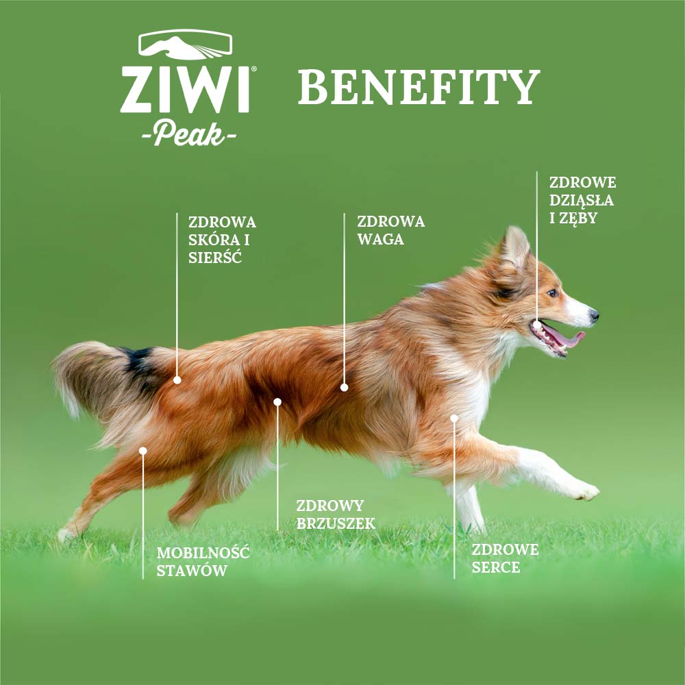 Ziwi Peak jest marką karm i przysmaków dla psów produkowaną przez ZIWI® Limited w Nowej Zelandii. Od chwili założenia, ideą przyświecającą firmie, jest dostarczanie pożywienia dla psów i kotów o maksymalnie wysokiej jakości. Celem marki Ziwi Peak jest uświadomienie właścicielom psów i kotów, jak ważne jest karmienie zwierząt domowych zgodnie z zamierzeniami matki natury tak, aby osiągnąć optymalną kondycję, zdrowie oraz dobre samopoczucie zwierzęcia. Receptury karm przygotowywane są z etycznie pozyskiwanych składników, przetwarzanych tak, aby zachować ich integralność odżywczą. Firma duży nacisk kładzie na to, żeby odpowiadać na biologiczne potrzeby mięsożernych zwierząt. Dlatego produkty Ziwi Peak są tak przygotowane, aby zapewnić Twojemu zwierzęciu zaspokajanie instynktownych, naturalnych potrzeb żywieniowych, podobnych do pokarmu jaki zjadałby na wolności.